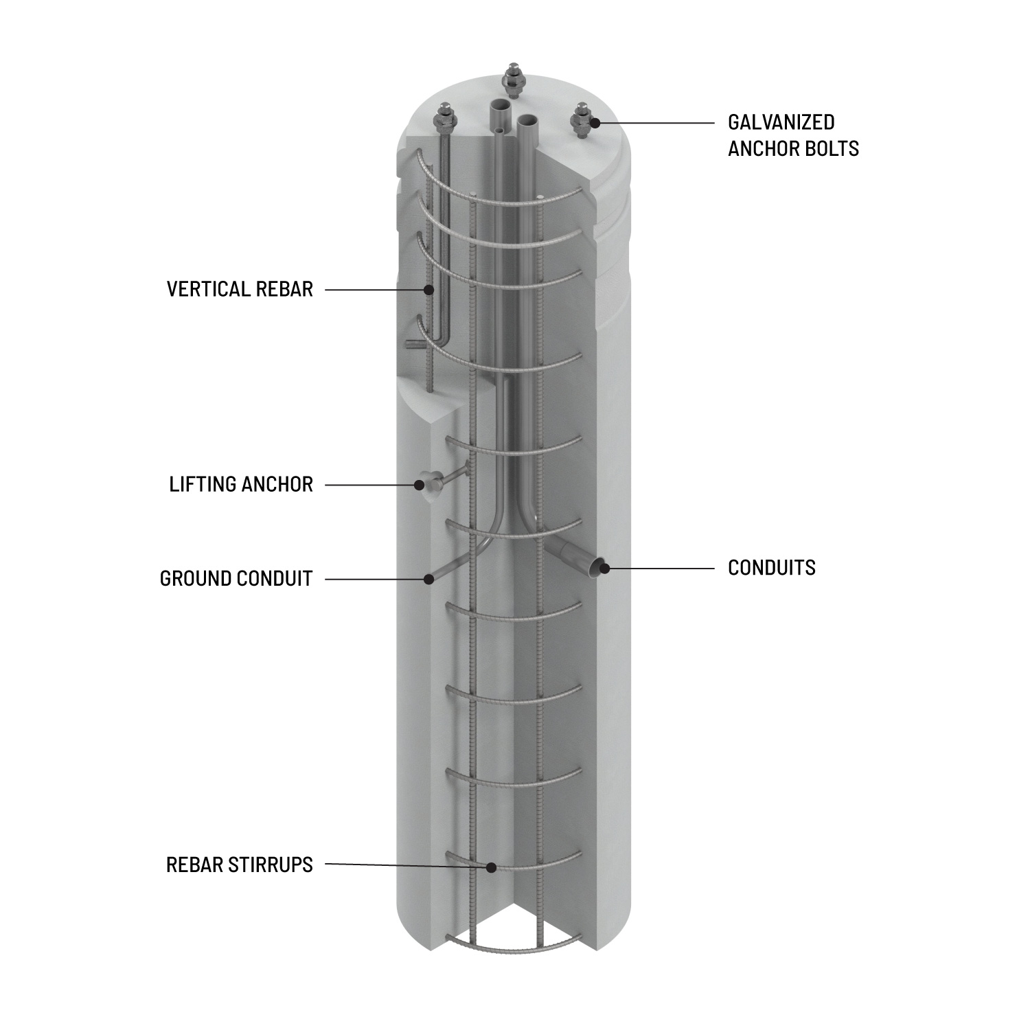 Each pole base has an available range of bolt circle diameters allowing the anchor bolts to be cast in as per the job requirement.